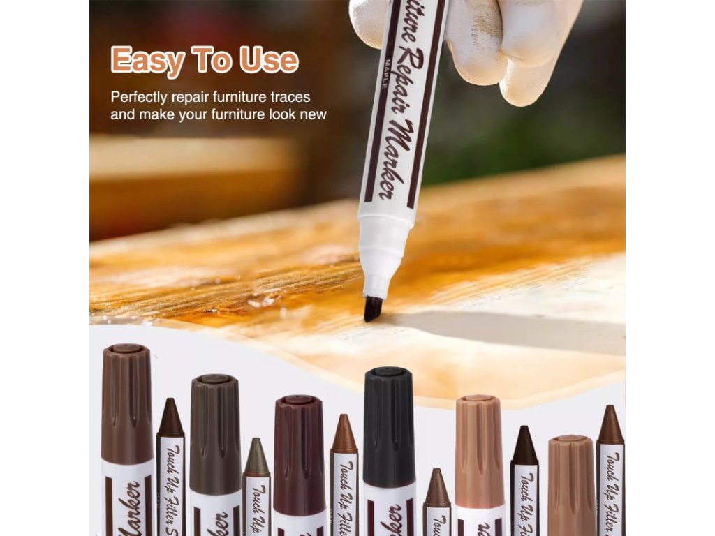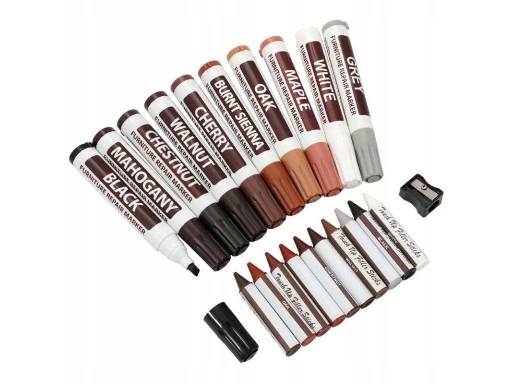 Tato 21dílná sada je ideálním řešením pro rychlé a efektivní opravy škrábanců, oděrek a drobných poškození na nábytku, dveřích i podlahách. Díky kombinaci voskových kříd a opravovacích fixů v různých odstínech snadno splyne s jakýmkoliv dekorem dřeva. Vhodná pro domácí i profesionální použití.