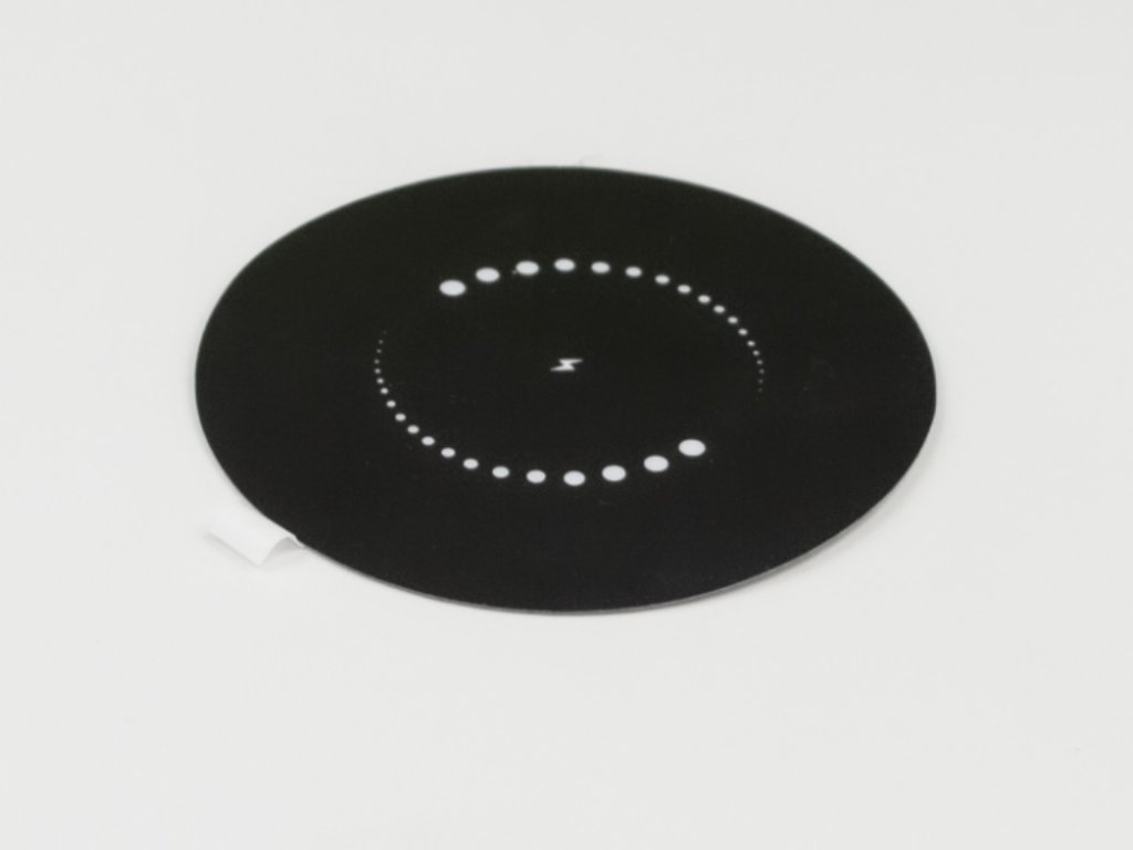 Nabíječka se instaluje pod stůl, na stůl se nalepí chytrá nálepka, na kterou si položíte svůj telefon a nabíjení začne. Chytrou nálepku lze zakoupit i v barvě bílé, viz související produkty.