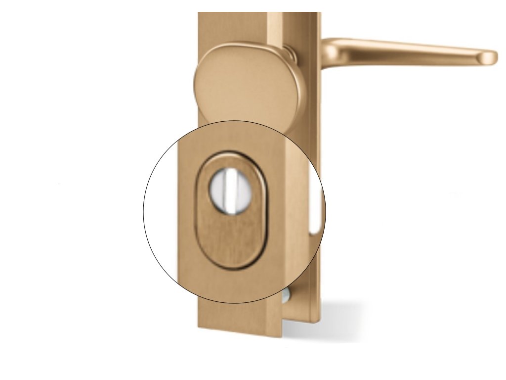 Překrytka vložky = otvor pro vložku je opatřen na vnějším štítu speciální kovovou krytkou, která slouží proti napadení cylindrické vložky.