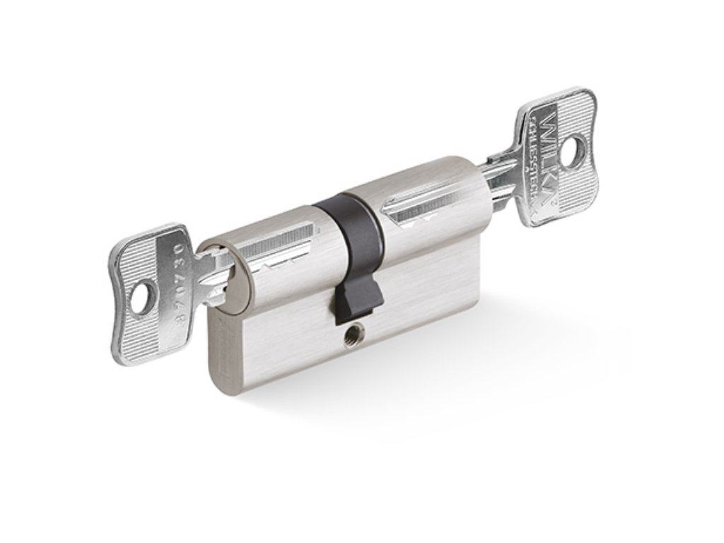Vložka s havarijní funkcí znamená, že vložka lze odemknout i při zamknutém nebo pootočeném klíči z druhé strany.