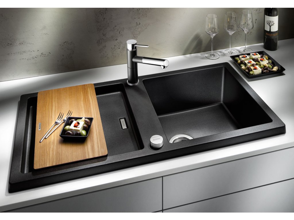 Granitový dřez Blanco ADON XL 6 S InFino jasmín + dřevěná krájecí deska, nerez drát. koš a excentr 523609