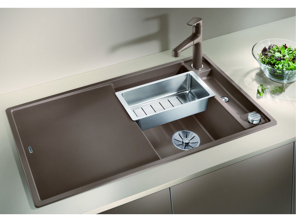 Granitový dřez Blanco AXIA III 5 S InFino káva + dřevěná krájecí deska a excentr 523214