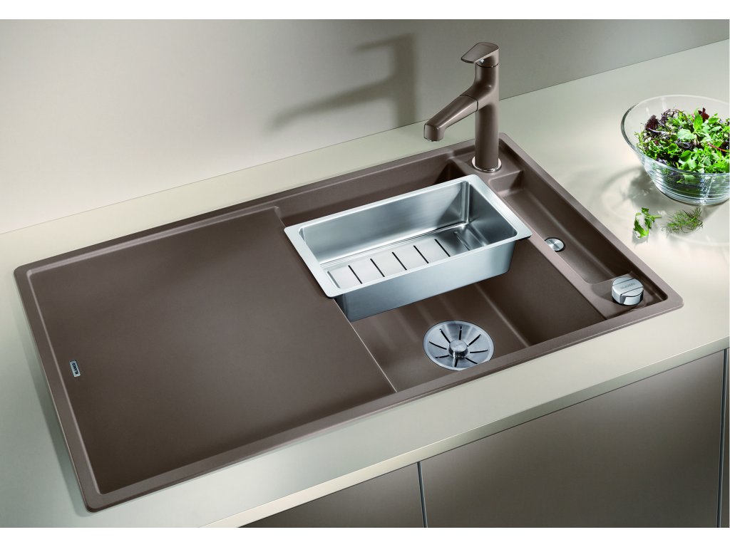 Granitový dřez Blanco AXIA III 5 S InFino tartufo + skleněná krájecí deska a excentr 523222