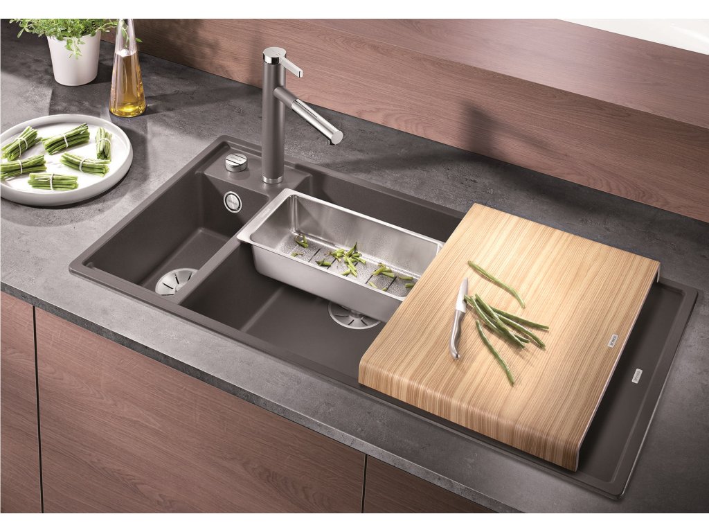Blanco AXIA III 6 S InFino Silgranit černá dřev.kráj.deska dřez vlevo s exc.
