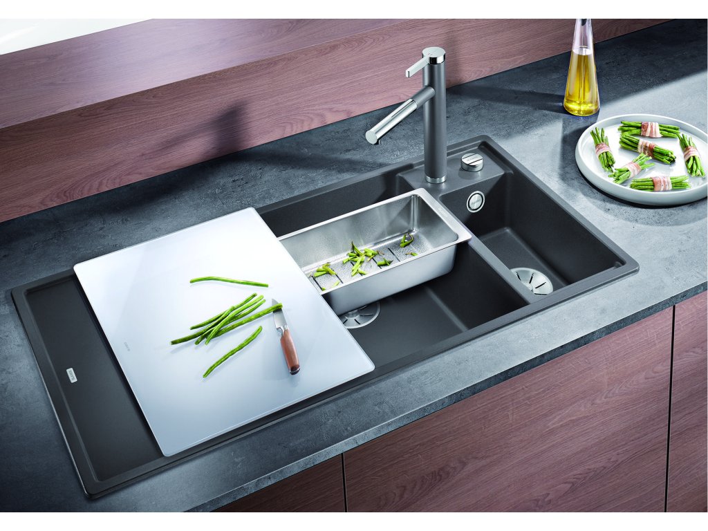 Blanco AXIA III 6 S InFino Silgranit černá sklen.kráj.deska dřez vpravo s exc.