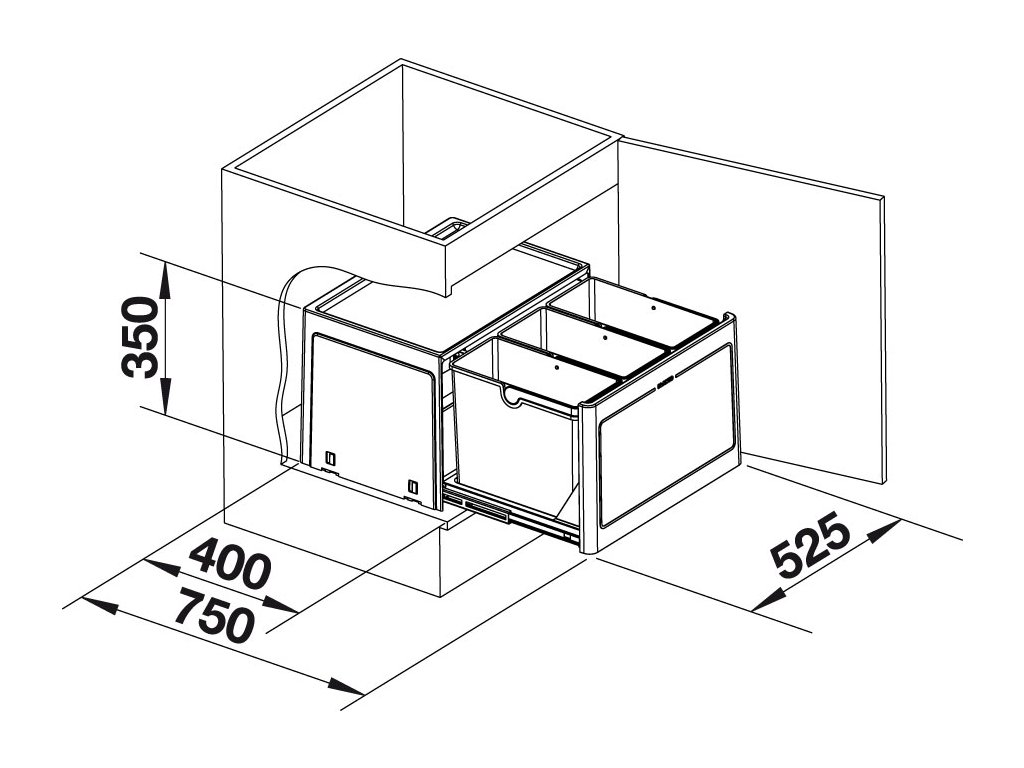 Odpadkový koš určený do kuchyňské skříňky, u které se dvířka otevírají pomocí nábytkových závěsů (pantů) s minimálním úhlem otevření 100°. Po otevření skříňky si koš vysunete za pomocí integrovaného úchytu. Koš je veden na kvalitním kuličkovém tichém plnovýsuvu. Jedná se o stabilní konstrukci s atraktivním designem.