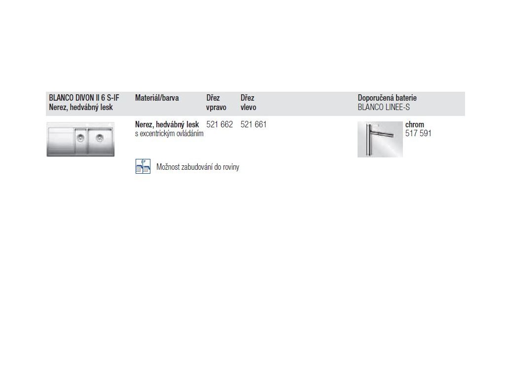 Blanco DIVON II 6 S-IF InFino Nerez hedvábný lesk dřez vlevo s excentrem