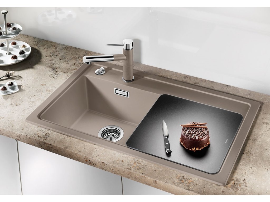 Blanco ZENAR 45 S Silgranit perlově šedá dřez vlevo s excentrem a skleněnou krájecí deskou