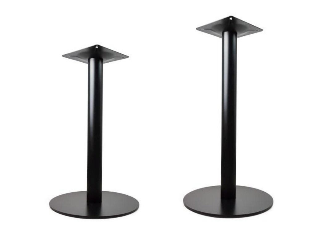 robustní konstrukce centrální nohy dovoluje použití pro stolovou desku až po průměr 80 cm respektive 70 cm u varianty výšky 110 cm, kulatá základna je masivní a těžká, zaručuje tak stabilitu stolu.