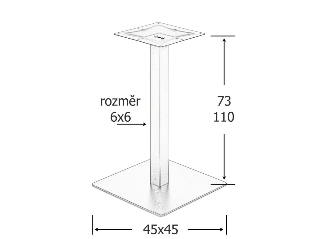 robustní konstrukce centrální nohy dovoluje použití pro stolovou desku až po rozměr 80x80 cm respektive 70x70 cm u varianty výšky 110 cm, čtvercová základna je masivní a těžká, zaručuje tak stabilitu stolu.