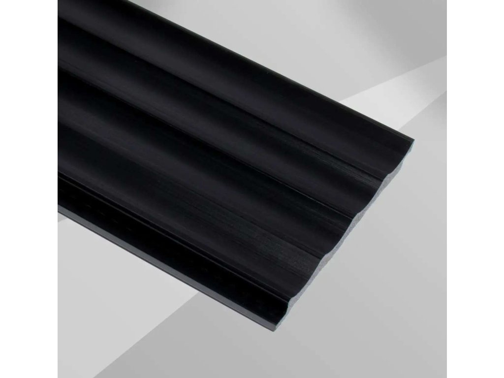 Vyrobeno z plastového recyklátu (92%) a granulátu (8%) jedná se tedy o materiál ekologický svým původem. Následně potaženo fólií s hluboce černým vzhledem. Tento materiál je odolný pevný a skvěle se s ním pracuje. Dá se použít i do prostor se zvýšenou vlhkostí (okolí bazénu, wellnes apod.).
