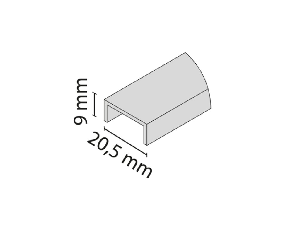 Dokončovací profil je určen pro desky o tloušťce 18 mm. Výška boční stěny - 9 mm.