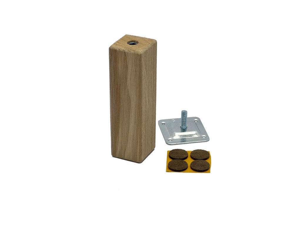 Nábytková nožka vyrobena z masivního dřeva - dub, bez lakování. Dřevěný nábytkový prvek se v interiéru neztratí, hodí se jak ke světlým dekorům tak tmavě laděným.