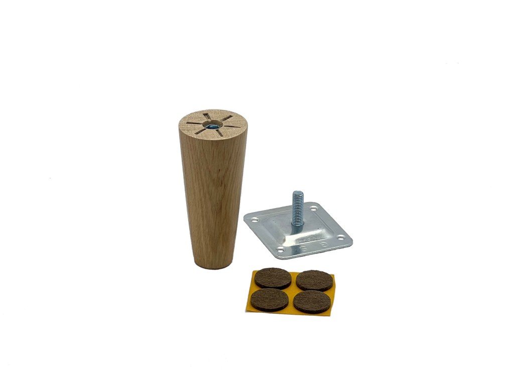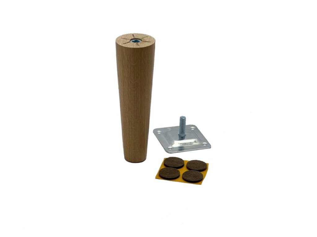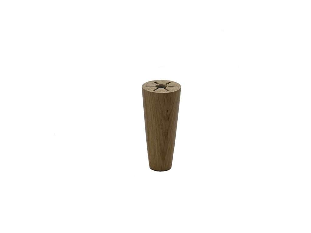 Nábytková nožka vyrobena z masivního dřeva - dub, bez lakování. Dřevěný nábytkový prvek se v interiéru neztratí, hodí se jak ke světlým dekorům tak tmavě laděným.