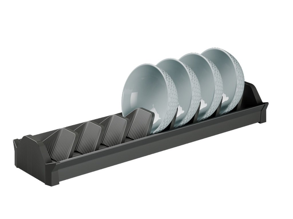 Jedná se o držák na misky, vhodný do zásuvek pro hloubku 500 mm. Držák je z plastu a v odstínu antracitová.