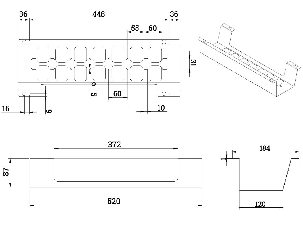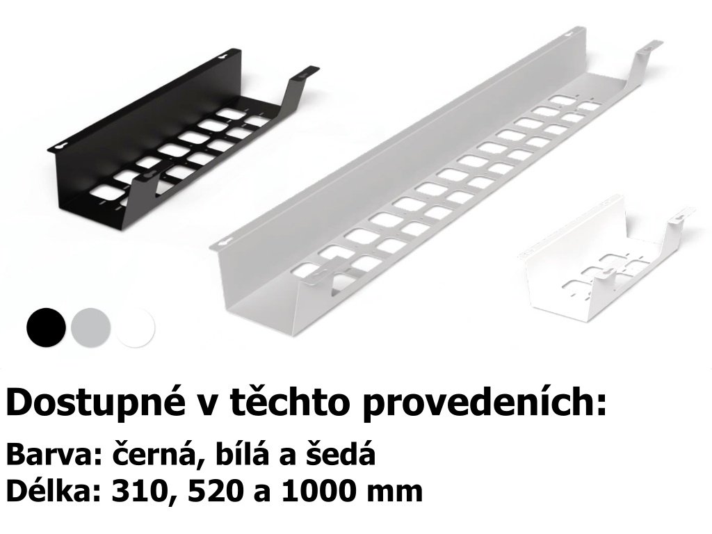 instalace držáku probíhá jednoduše pomocí vrutů do spodní strany stolu. Držák je ocelový velmi róbustní a pevný. Dostupné jsou tři délky pro maximální pokrytí prostoru pro kabely.