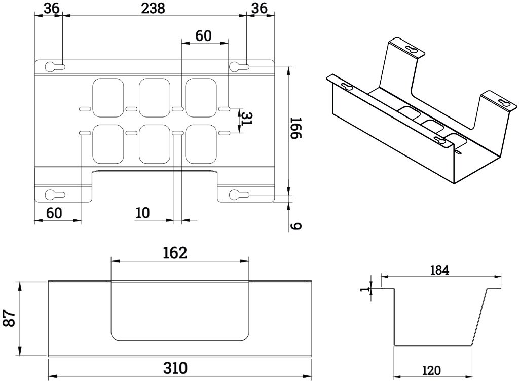 Držák kabelů a zásuvek pod stůl BOXIT V bílý