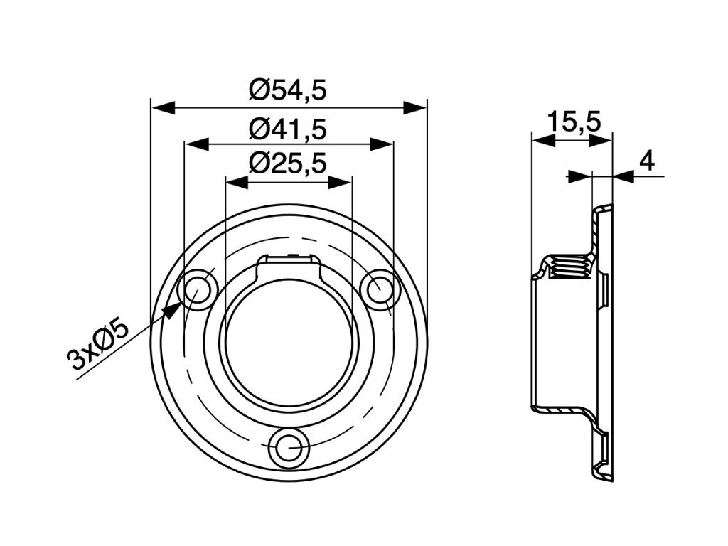 Držák určený pro montáž kulaté šatní tyče o pr. 25mm. Držák se připevní vruty do boční stěny skříně.