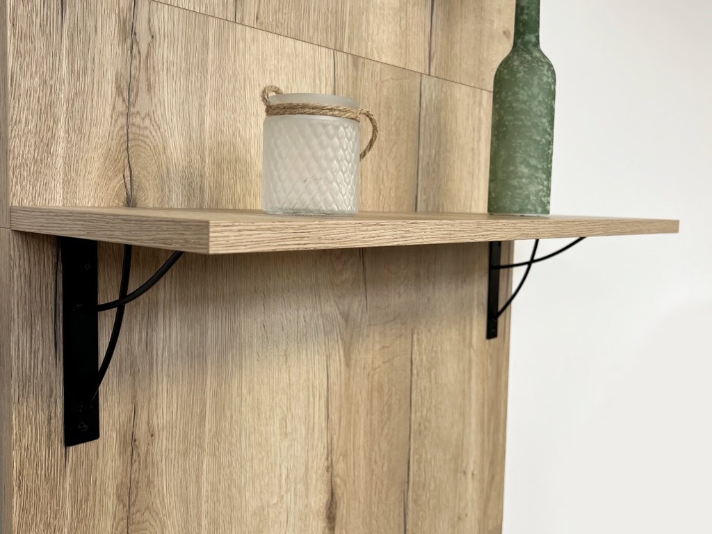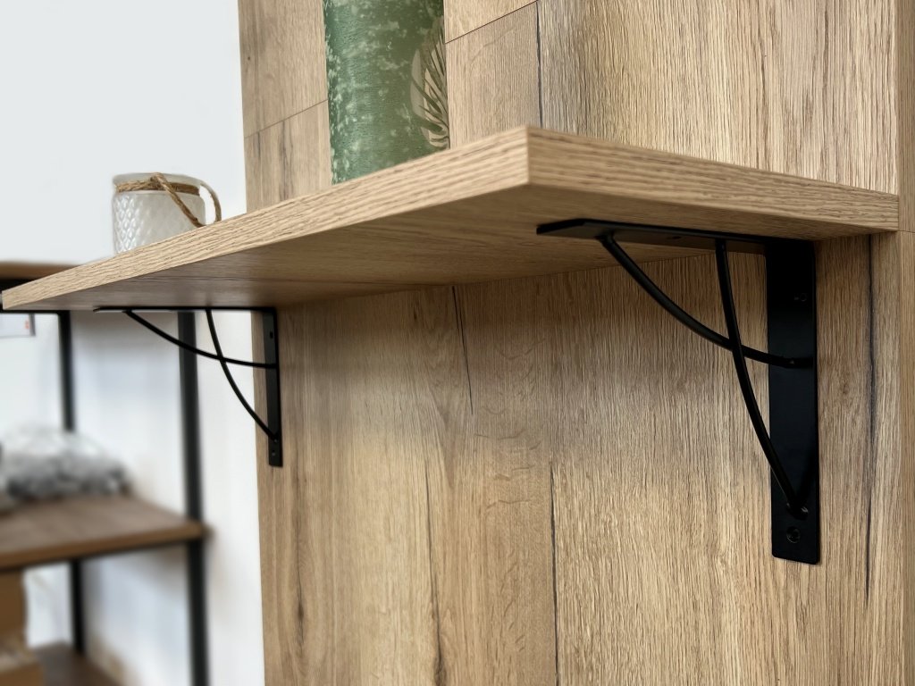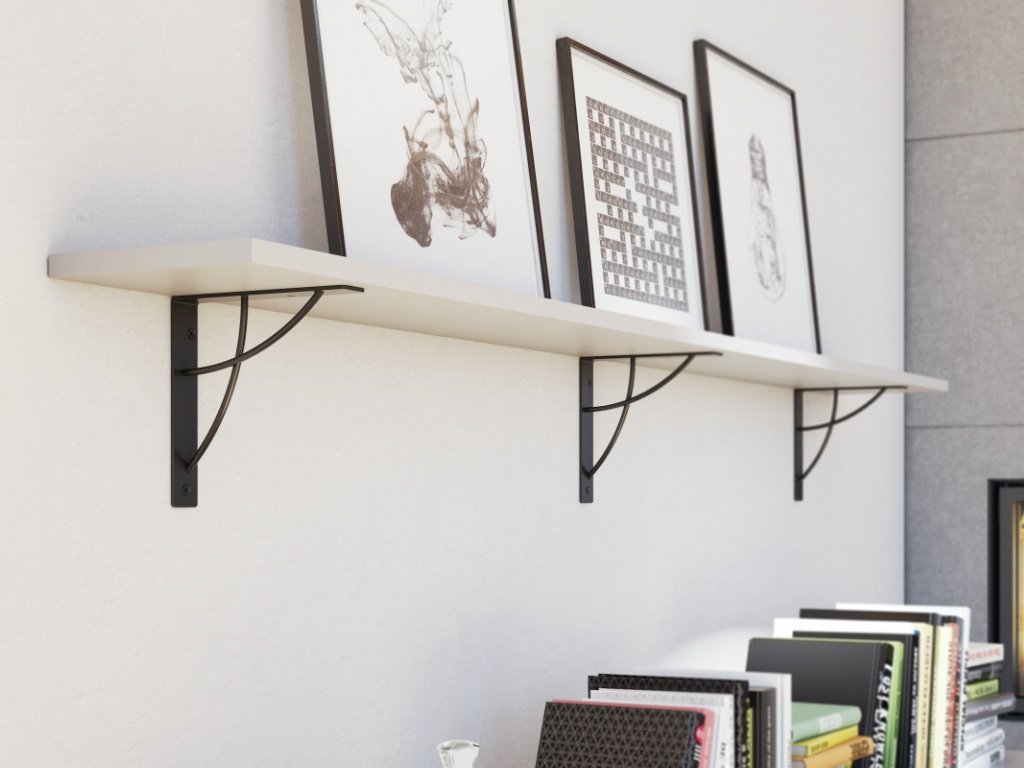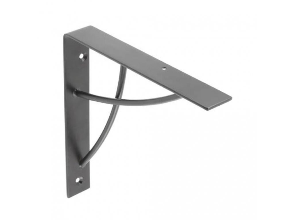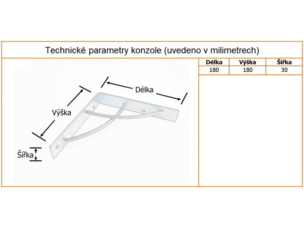 Designová podpěra police vynikne v každém interiéru, její hloubka 180 mm dobře poslouží i pod police s knihou. Instalace je jednoduchá, stačí pouze dva vruty s hmožďinkou do stěny a jeden vrut do police (doporučujeme lamino, dřevo apod.).