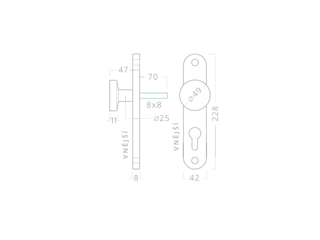 Dveřní kliky - tvar rozety/štítu: | Oválný štít |