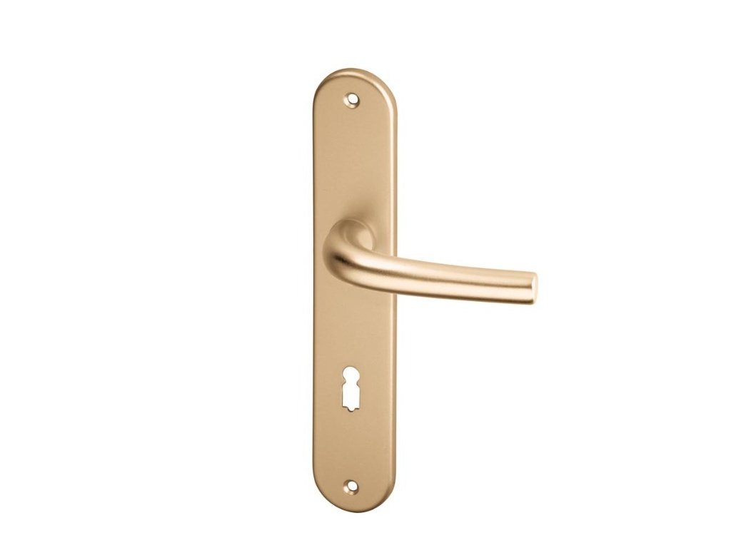Klasické dveřní kování do interiéru - štítková klika oválná na dveře s jednoduchým designem.