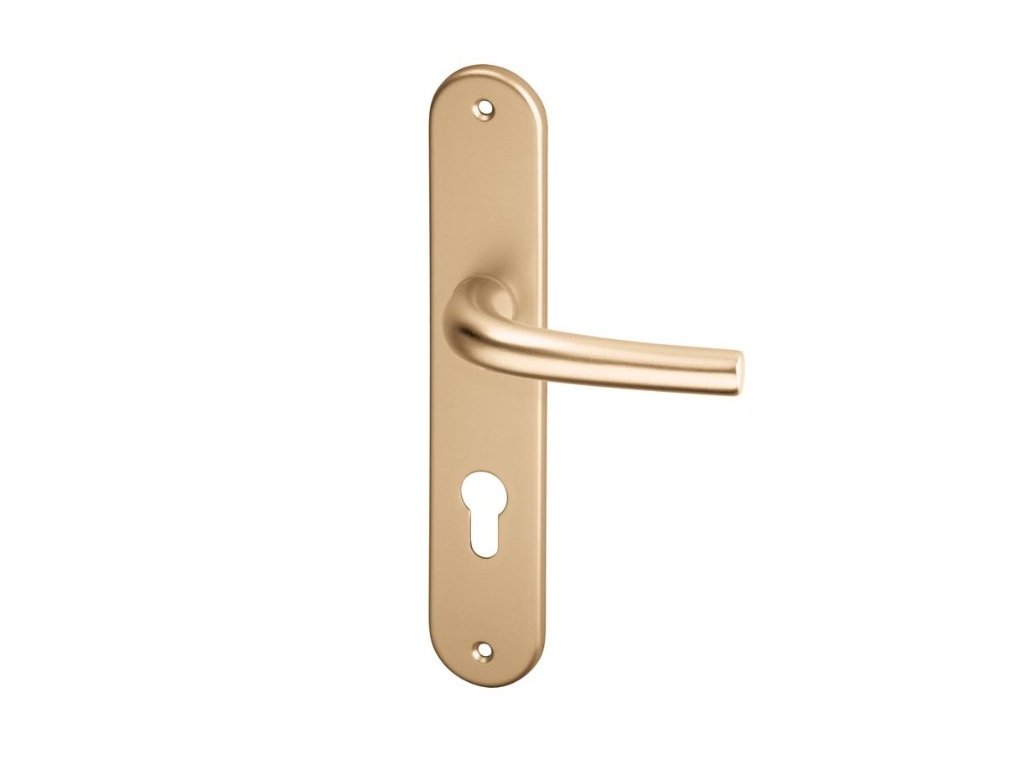 Klasické dveřní kování do interiéru - štítková klika oválná na dveře s jednoduchým designem.