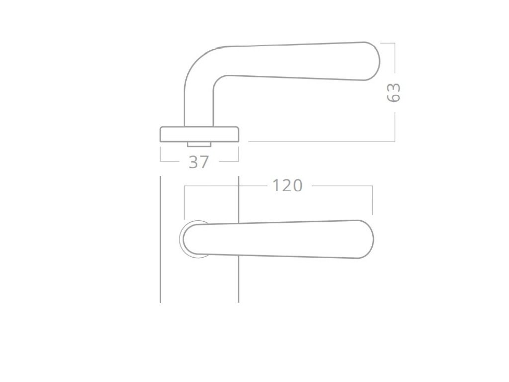 Klika je spojená se štítem a s vratnou pružinou. Bez trnů proti pootočení. Štíty jsou prošroubované skrz dveře.