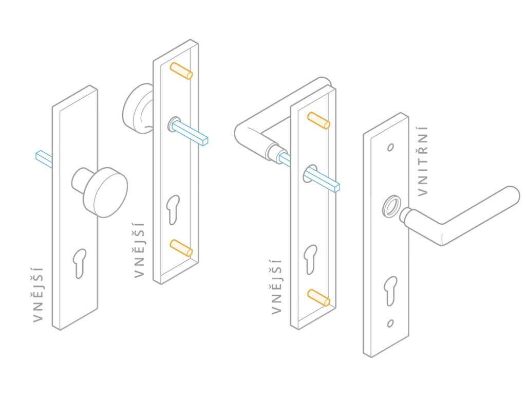 Dveřní kování je dostupné ve všech provedeních klíčů tedy PZ, BB, WC varianta a navíc také varianta klika/koule.