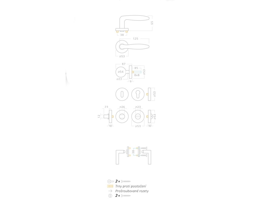 Dveřní kliky - upevnění kliky k rozetě: | Napevno spojené |