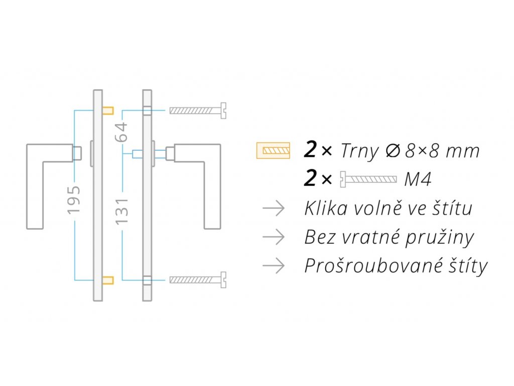 Dveřní kliky - tvar rozety/štítu: | Hranatý štít |