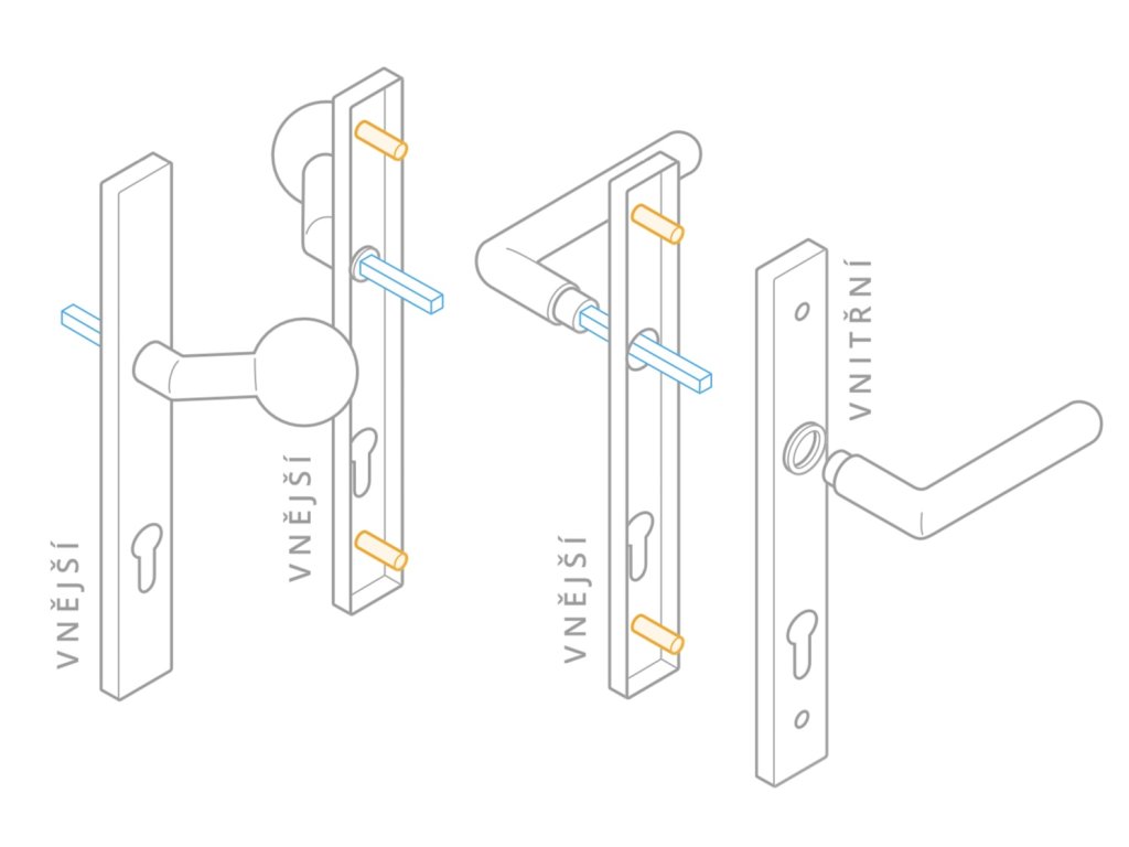 Dveřní kování je dostupné ve všech provedeních klíčů tedy PZ, BB, WC varianta a navíc také varianta klika/koule.