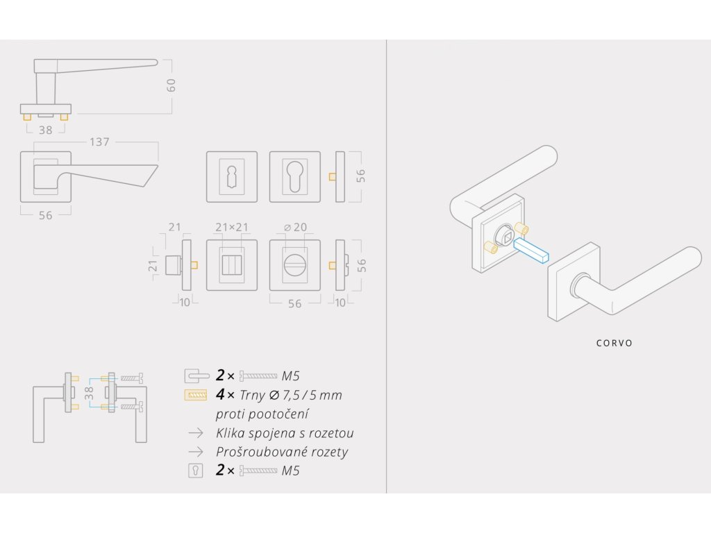 Dveřní klika CORVO matný chrom - hranatá rozeta
