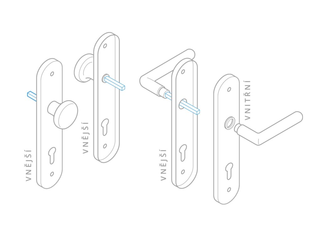 Dveřní kování je dostupné ve všech provedeních klíčů tedy PZ, BB, WC varianta a navíc také varianta klika/koule.