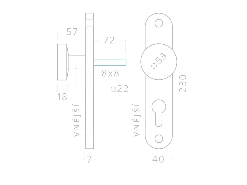 Dveřní kliky - tvar rozety/štítu: | Oválný štít |