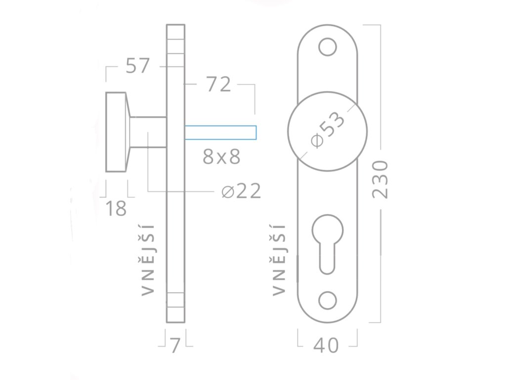 Dveřní kliky - tvar rozety/štítu: | Oválný štít |