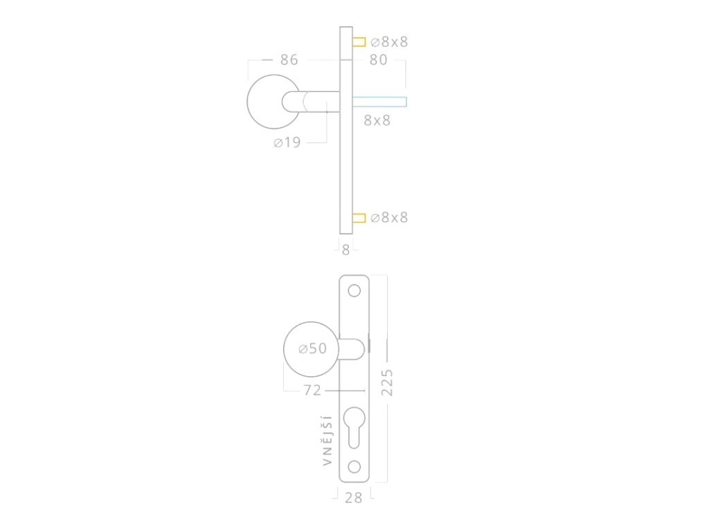 | Dveřní kliky - tvar rozety/štítu: | Úzký štít |