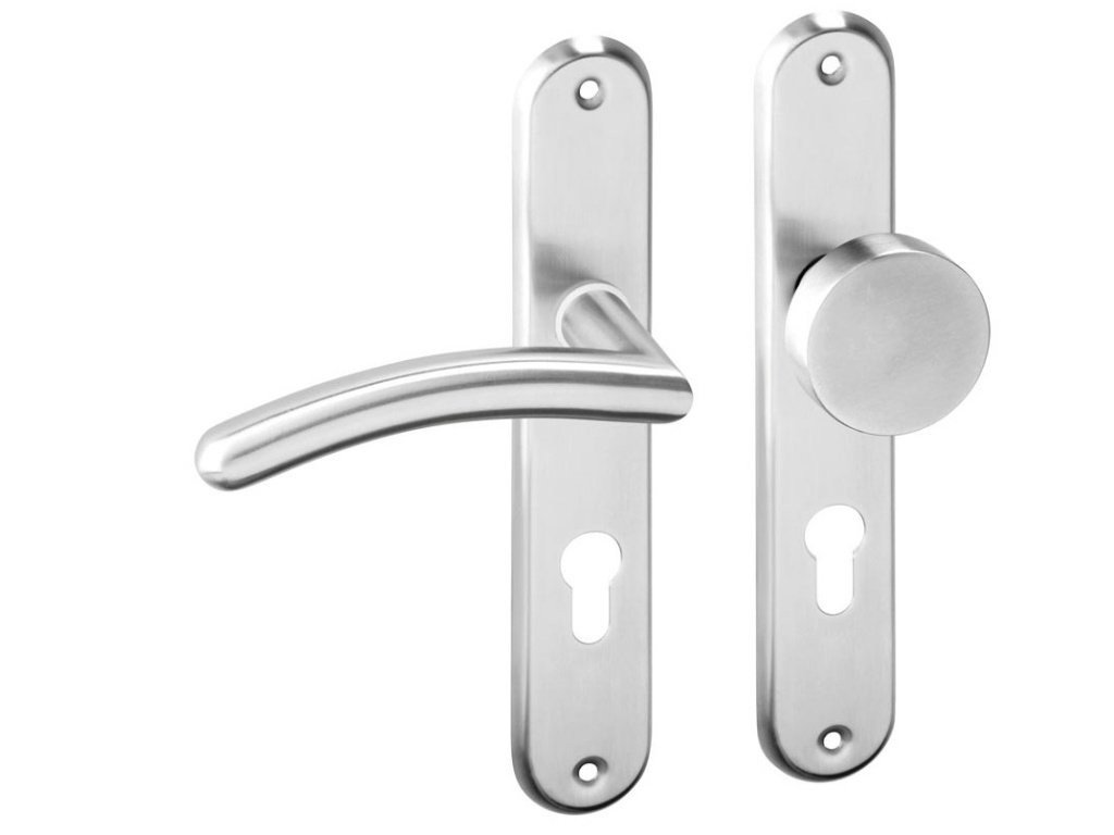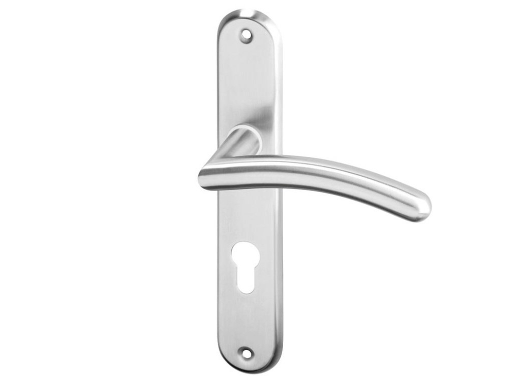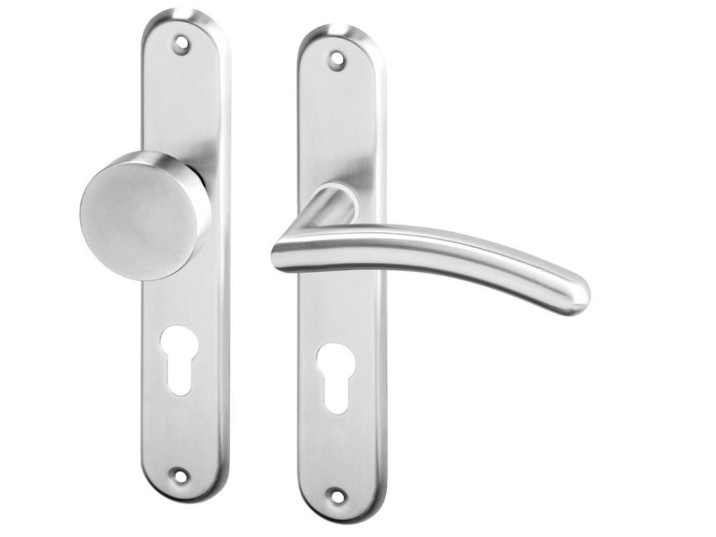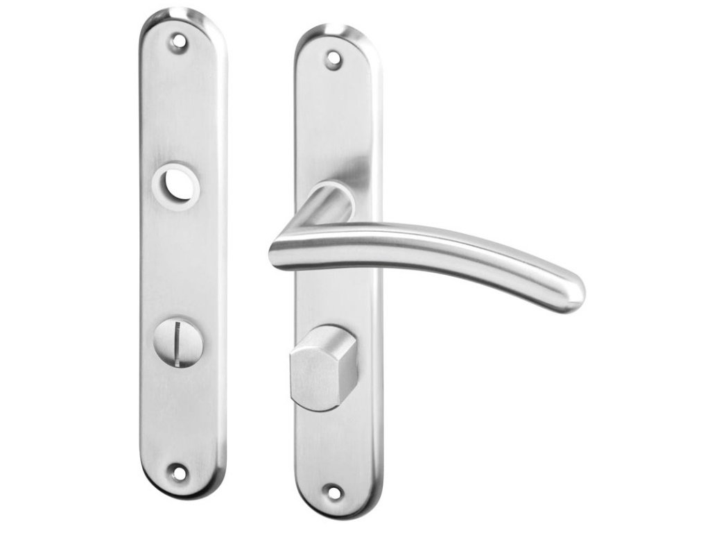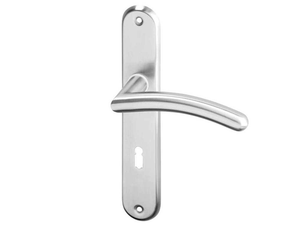 Moderní dveřní kování do interiéru - štítková klika oválná na dveře, materiál kliky je nerez AISI 304 s kvalitní nerezovou povrchovou úpravou. Rozteč 72 mm.