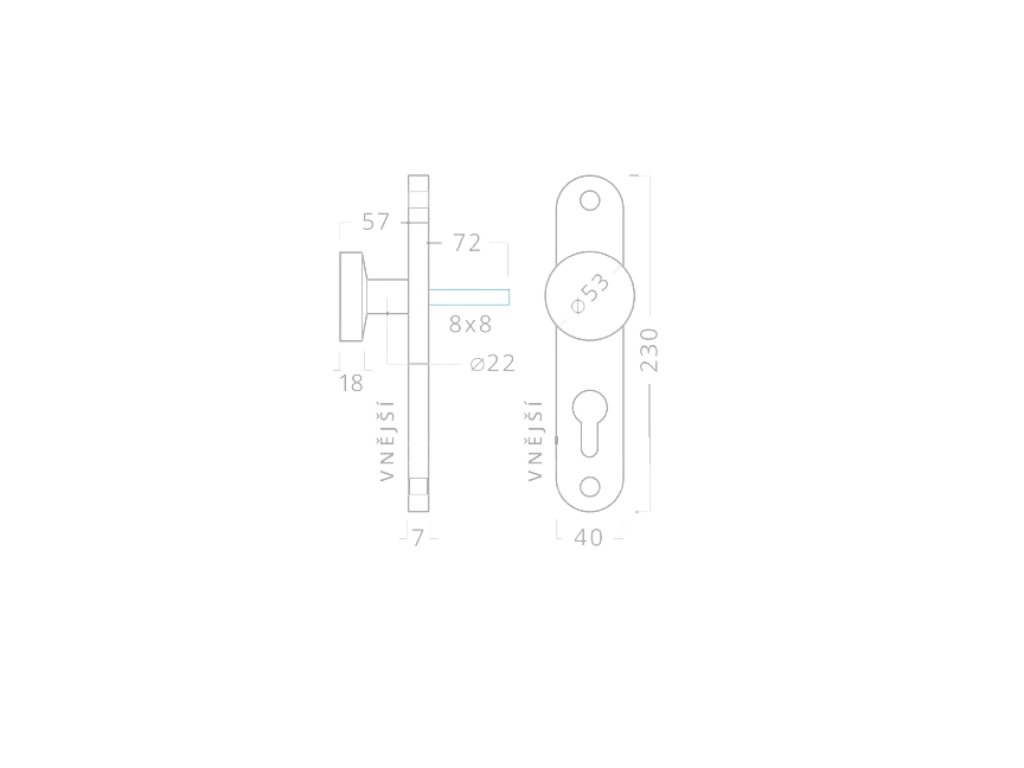 Dveřní kliky - tvar rozety/štítu: | Oválný štít |