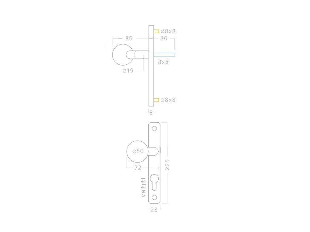 Dveřní kliky - tvar rozety/štítu: | Úzký štít |