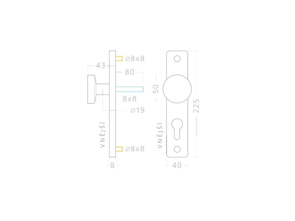 Dveřní kliky - tvar rozety/štítu: | Hranatý štít |