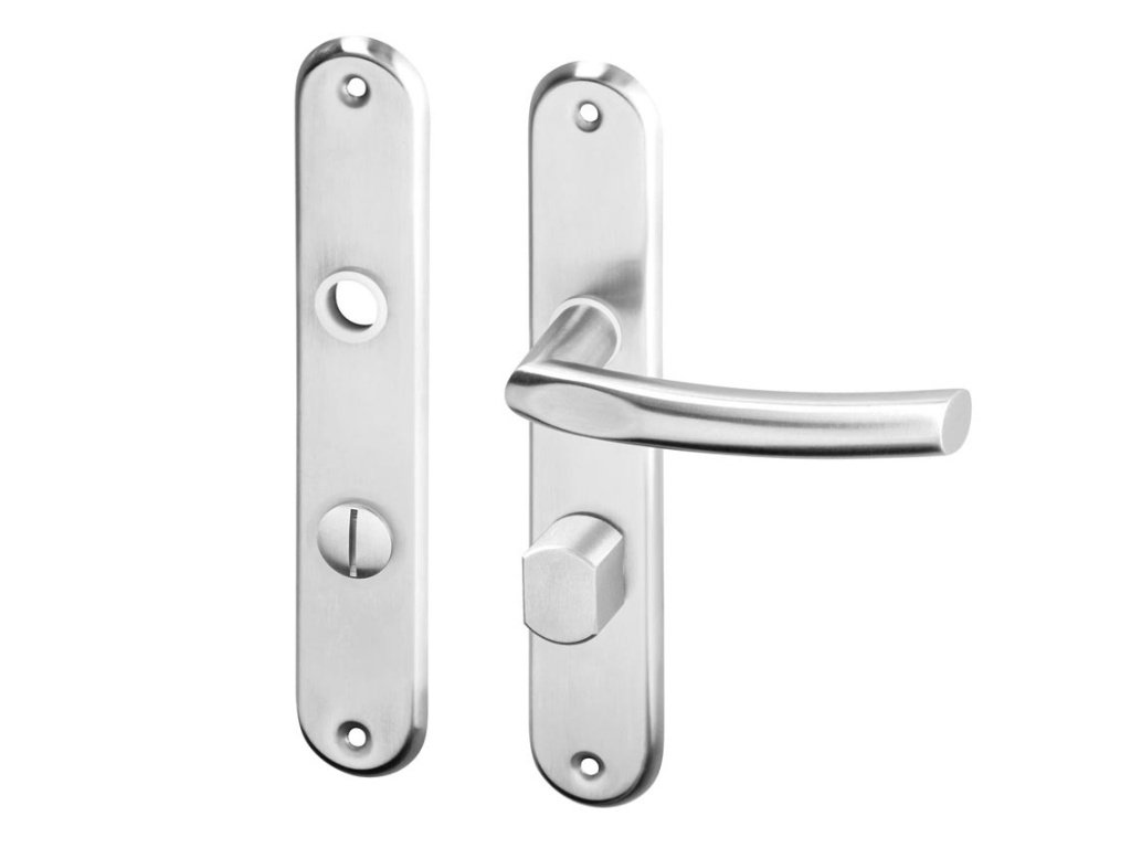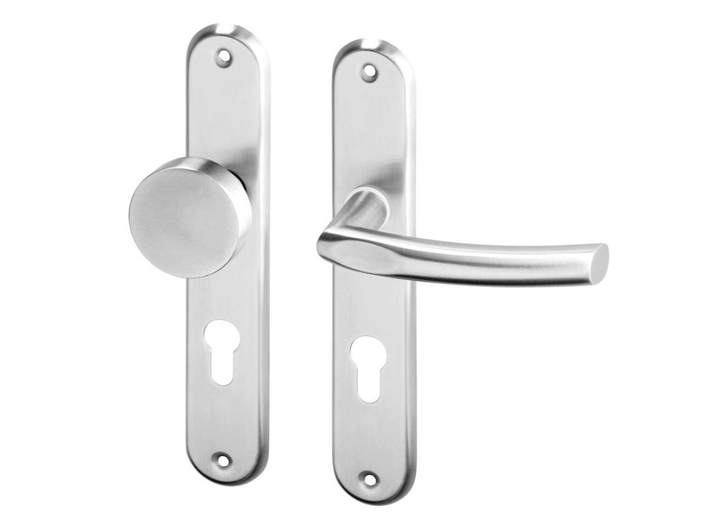 Moderní dveřní kování do interiéru - štítková klika oválná na dveře, materiál kliky je nerez AISI 304 s kvalitní nerezovou povrchovou úpravou. Rozteč 90 mm.