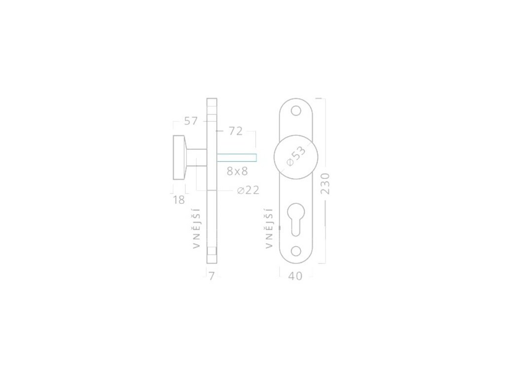 | Dveřní kliky - tvar rozety/štítu: | Oválný štít |