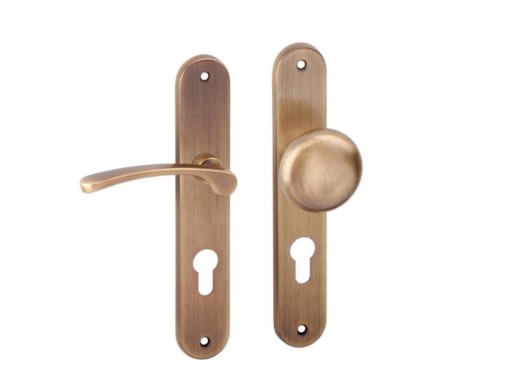 Klasické dveřní kování do interiéru - štítková klika oválná na dveře.
