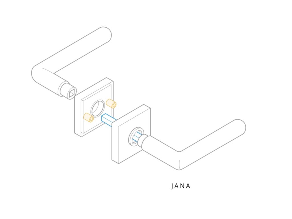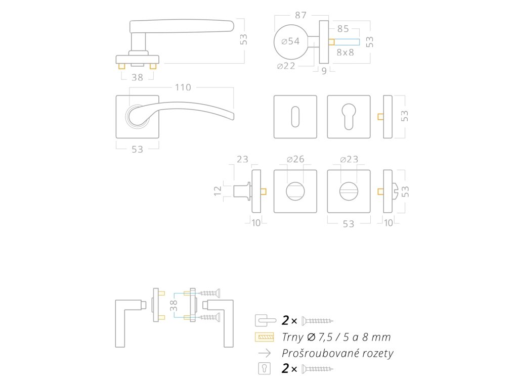 | Dveřní kliky - tvar rozety/štítu: | Hranatá rozeta |