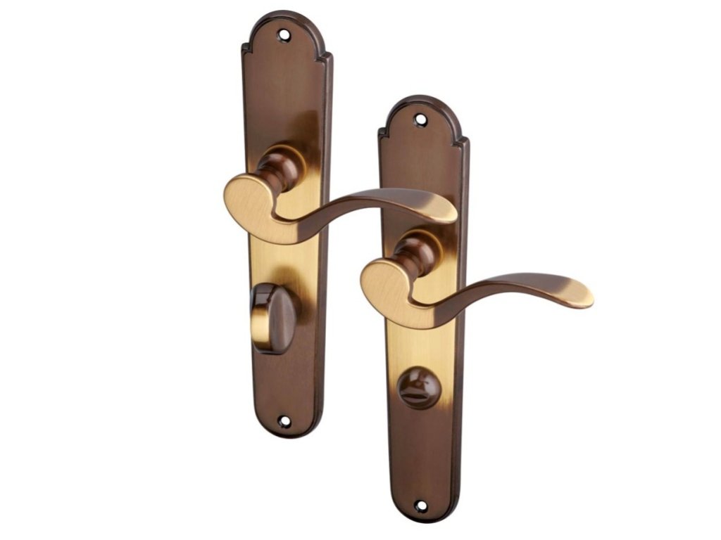Rustikální masivní dveřní kování do interiéru - tvarovaná štítová oválná klika na dveře.