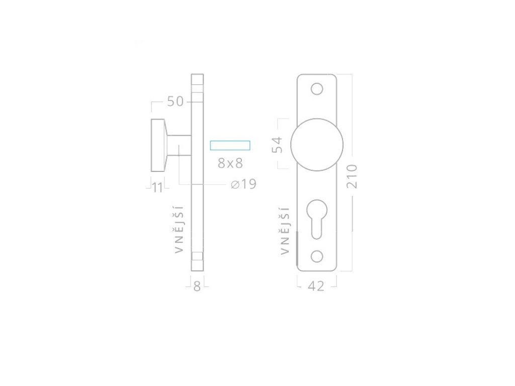 | Dveřní kliky - tvar rozety/štítu: | Hranatý štít |