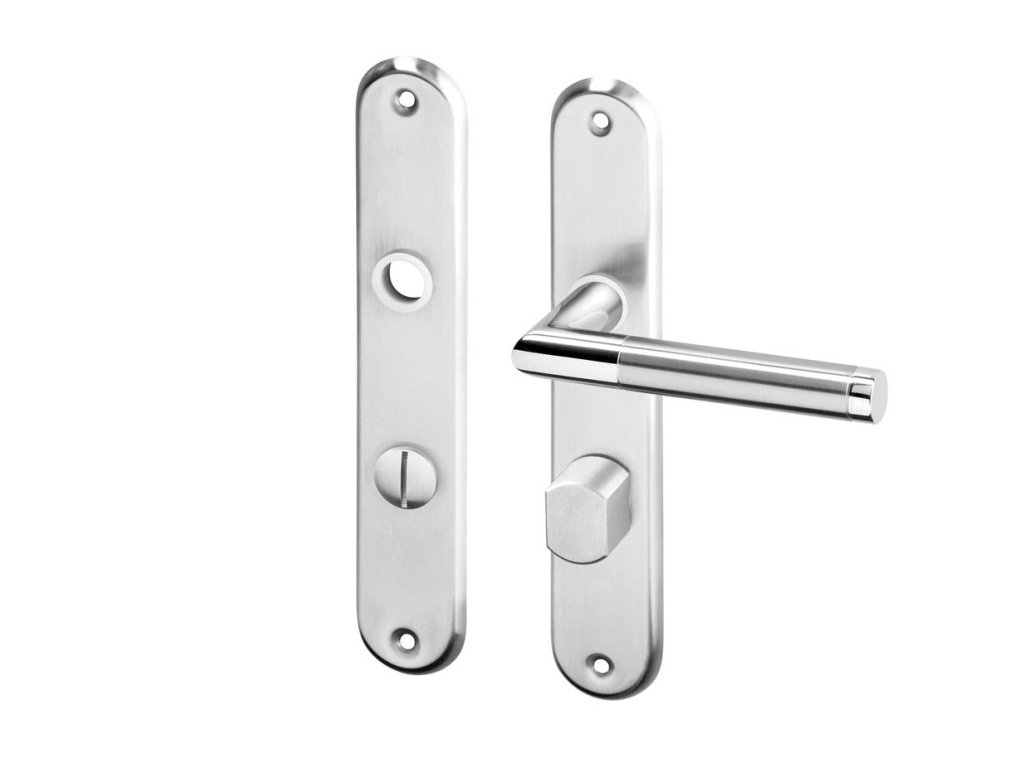 Moderní dveřní kování do interiéru - štítková klika oválná na dveře, materiál kliky je nerez AISI 304 s kvalitní nerezovou povrchovou úpravou. Rozteč 90 mm.