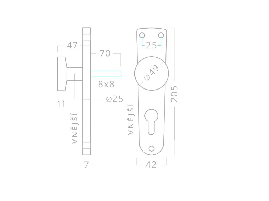 | Dveřní kliky - tvar rozety/štítu: | Hranatý štít |