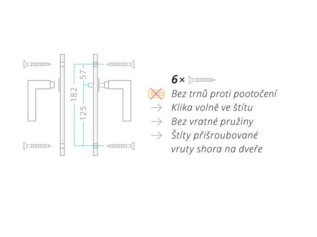 Klika je volně ve štítu bez vratné pružiny. Bez trnů proti pootočení.