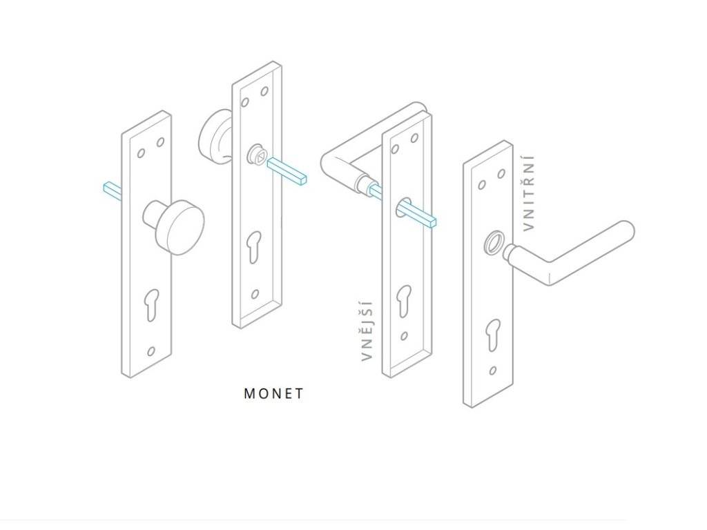 Dveřní kování je dostupné ve všech provedeních klíčů tedy PZ, BB, WC varianta a navíc také varianta klika/koule.